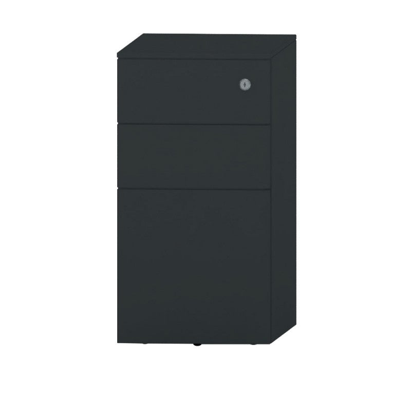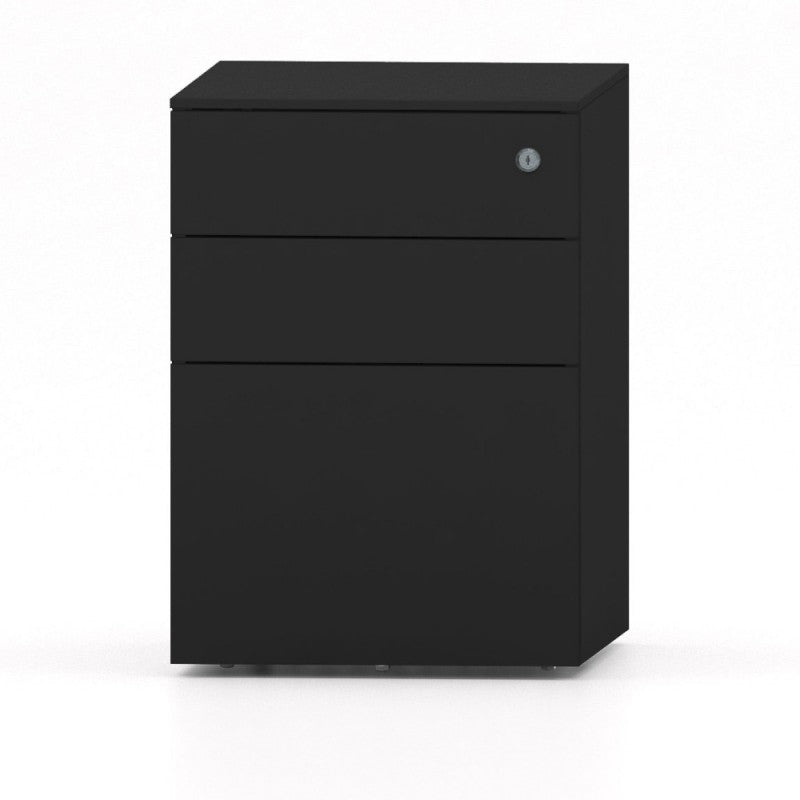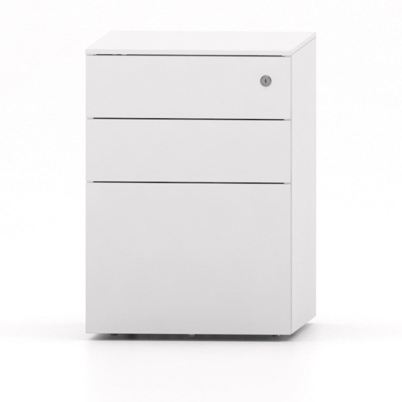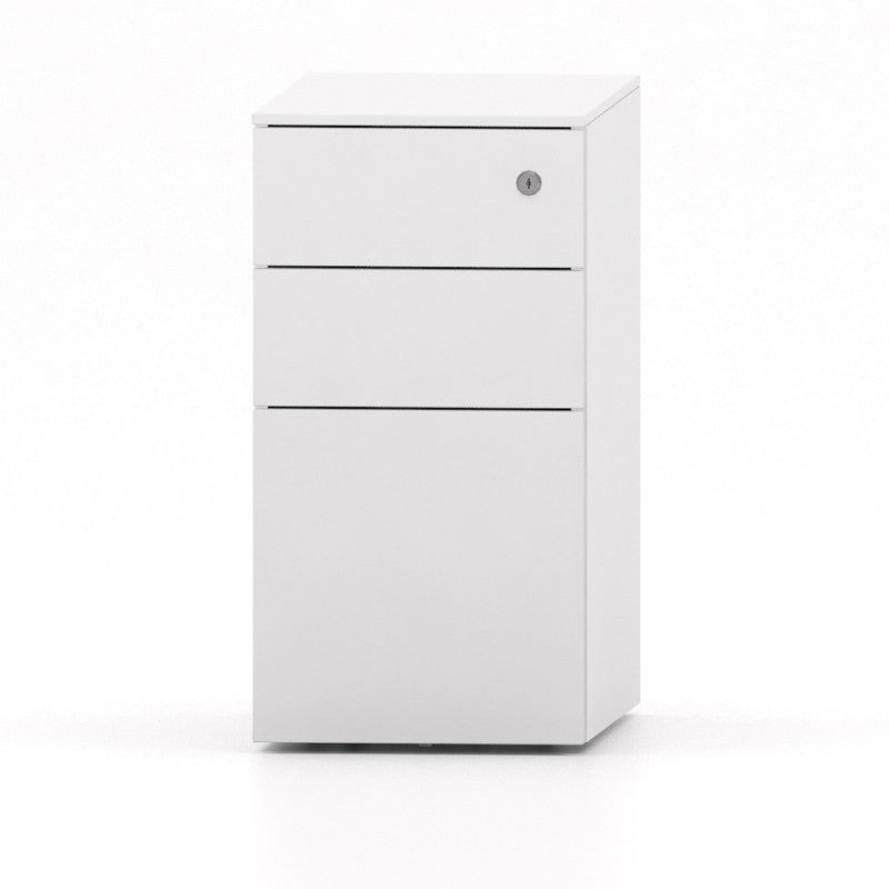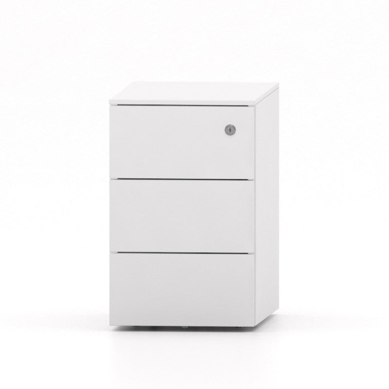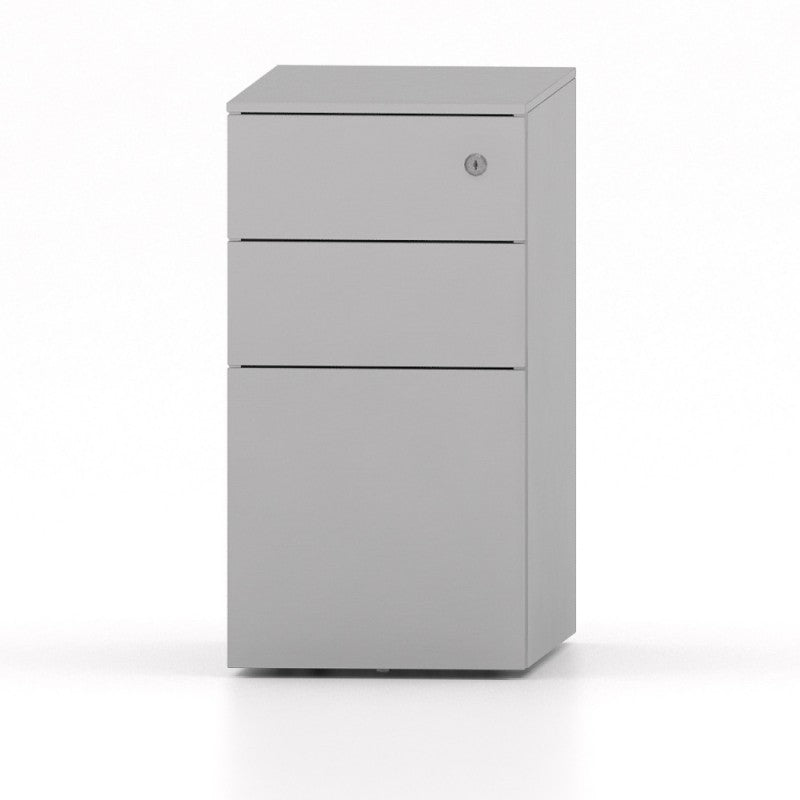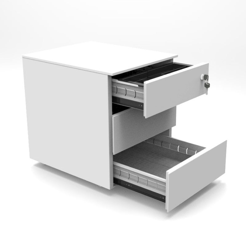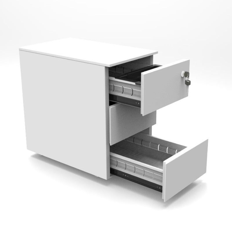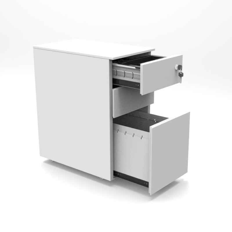 Width options include either NARROW (30cm) or STANDARD (41cm) Choose between having either 1 or 3 personal drawers Option to include or exclude a file drawer The file drawer accommodates both A4 and foolscap paper sizes Pen tray and drawer dividers, Central locking Pre-assembled castor wheels hidden Smooth ball bearing runners
